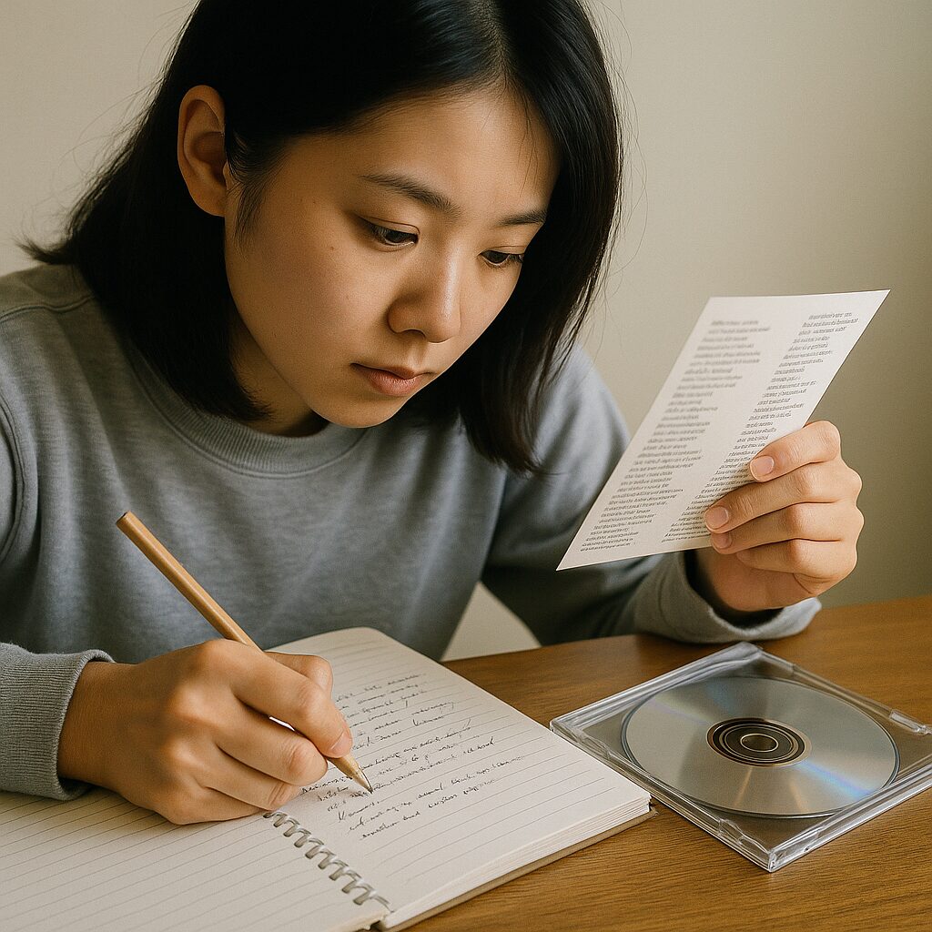 ノートに歌詞を書き出すという作業には、自分の中での特別な体験を記憶に留める役割があります。この行為は、アーティストとの新たなつながりを感じさせ、また、自分だけの秘密を手に入れたような満足感をもたらします。歌詞を書き出すことで自分オリジナルの歌詞カードが完成し、この時点でひとつの達成感を味わえるでしょう。