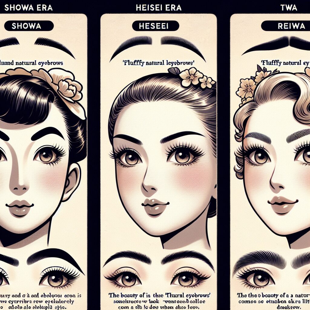 昭和から令和までの眉毛トレンドを振り返り、時代ごとの美意識や社会の変化を探ります。特に太眉、細眉、ナチュラル眉の変遷が印象的です。