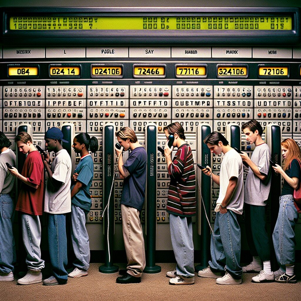 ポケベルは1990年代の若者に広く愛用されたユニークなコミュニケーションデバイスでした。携帯電話がまだ普及していない時代、公衆電話からメッセージを送信するために大勢の人が並んでいる姿は、その時代の象徴的な風景として多くの人々に記憶されています。特に「ポケベル暗号」と呼ばれる数字を用いたメッセージ法は、若者を中心に爆発的に広まり、多くの言葉遊びが生まれました。「084」は「おはよ」、「724106」は「何してる?」などのように、少ない表示文字数を活かした創意工夫がされています。