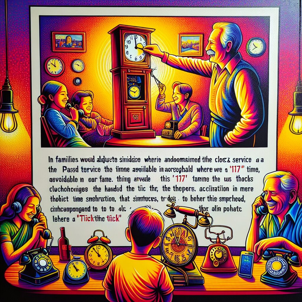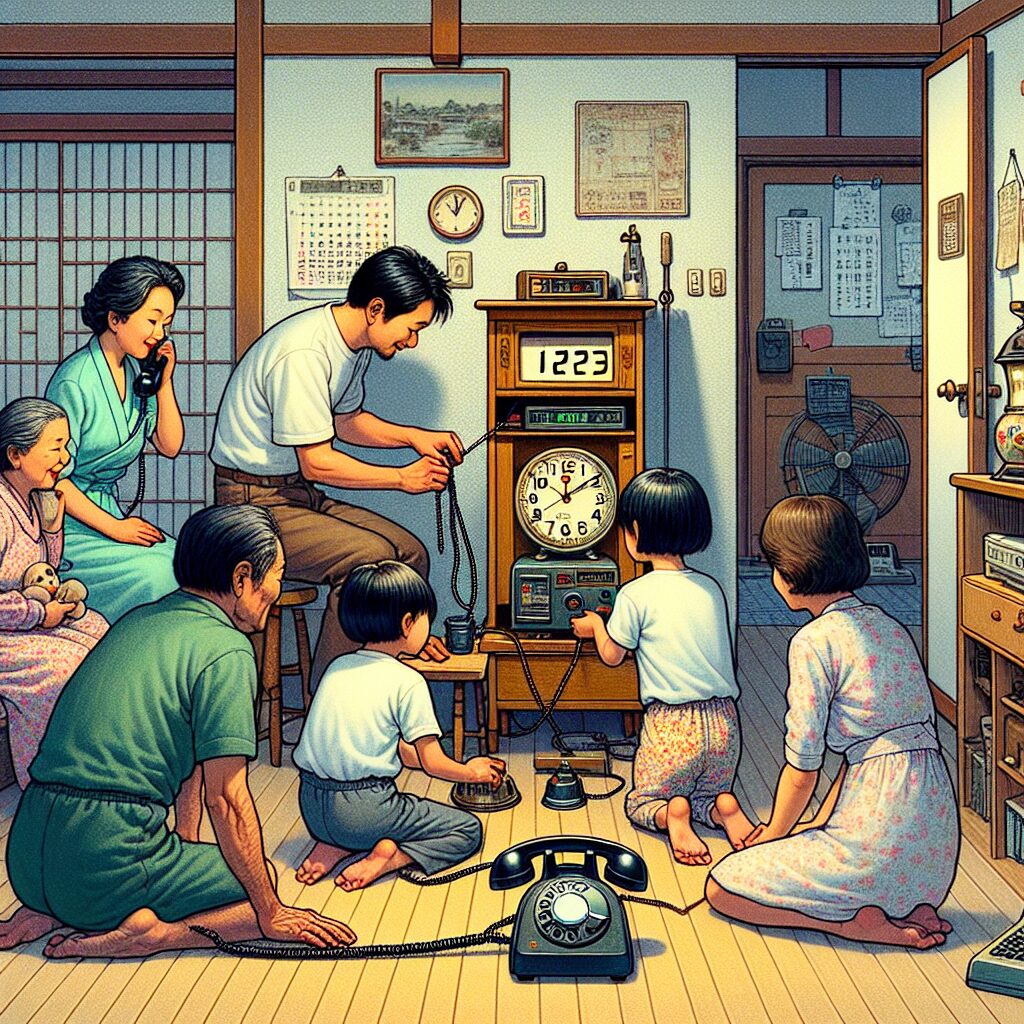 この時報サービスは、正確な時間を知るための重要な手段であり、特に昭和から平成初期にかけては、各家庭の電話機からいつでも時刻を確認することができました。技術が進化する前の時代、電波時計やスマートフォンが普及していない中で、「117」の時報は家庭内で信頼され、広く利用されていました。このプロセスは一つの儀式に似ており、家族全員で時間を合わせるという行為は、家庭内での小さなイベントでもありました。時報の音声に合わせて時計の針を調整する光景は、どこの家庭でも見られるもので、共通の文化として根付いていました。