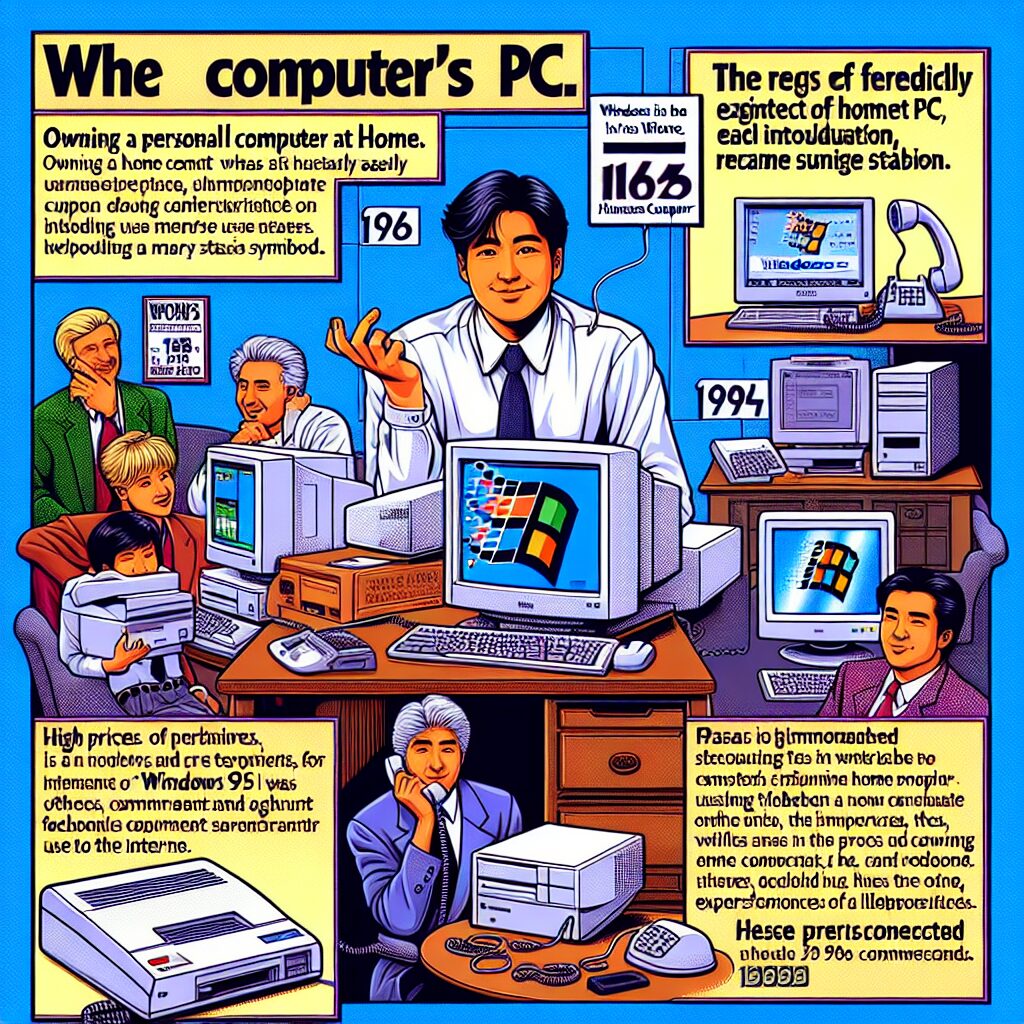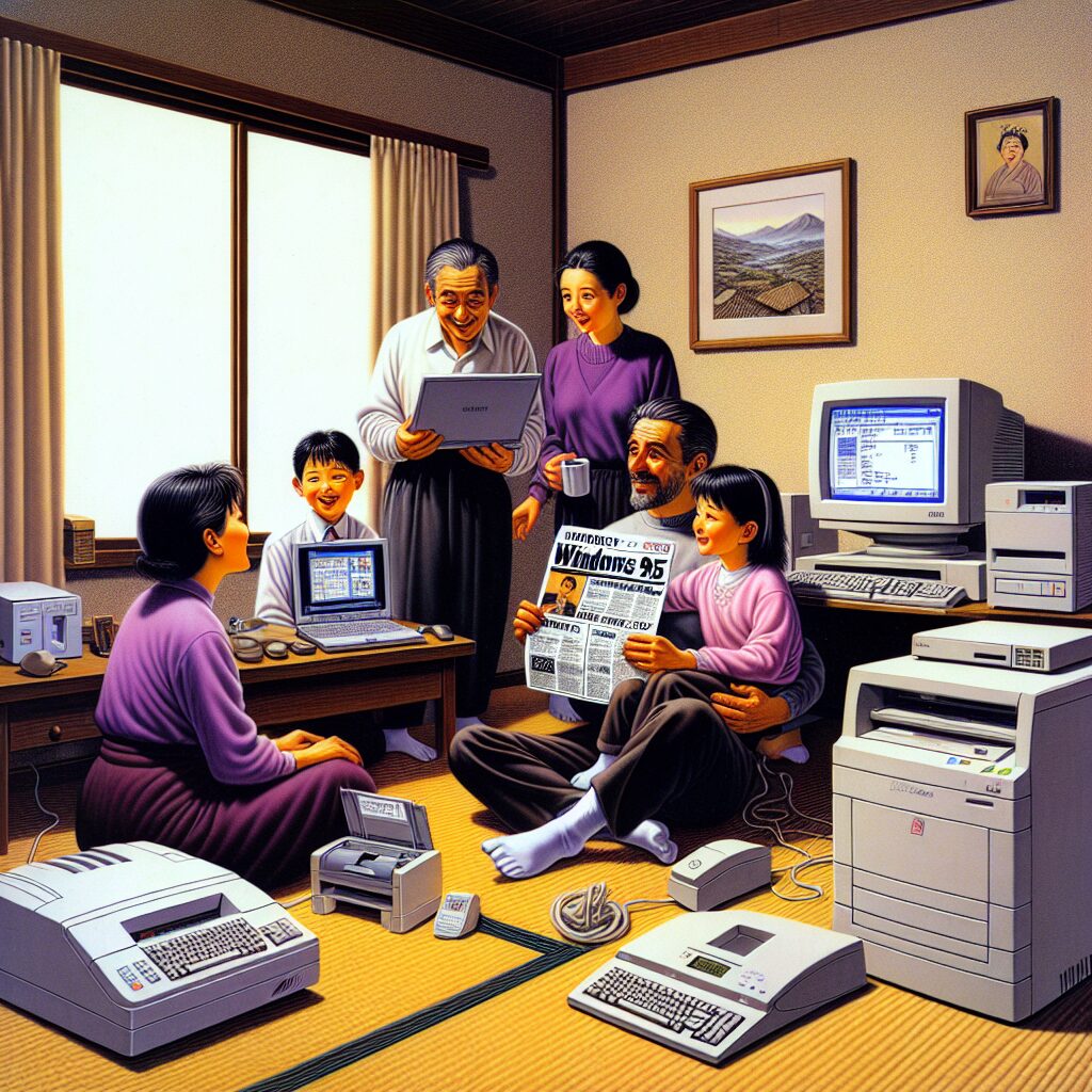 平成初期の日本では、パソコン所有は高価で特権的な存在。1995年のWindows 95が普及を後押しし、家庭に浸透していく。