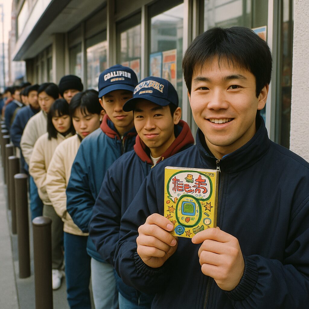 たまごっちは、デジタルペットを育てるという斬新なコンセプトで世間を賑わせました。その人気の高さから、発売時には多くの消費者が商品を手に入れるために早朝から店頭に並びました。その光景は、日本の店舗を一種の異空間に変え、列に並ぶ人々の表情には、たまごっちへの熱い期待と興奮が見て取れました。デパートからおもちゃ屋、家電量販店まで、あらゆる場所で開店と同時に商品が売り切れるといった状況が相次ぎました。