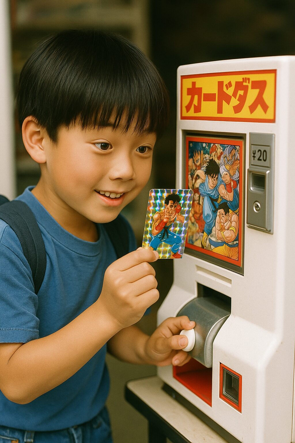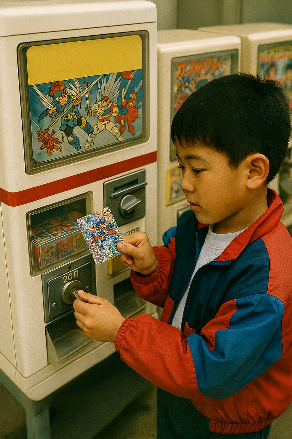 自販機の前では「あと何枚でキラカードが出るか」を予想したり、友達同士で情報を共有したりするのが日常でした。中でもキラカードの排出は一大イベントであり、誰もが狙い通りのカードを手に入れる瞬間を待ち望んでいました。その瞬間、自販機から出てきたカードが手に収まった時の興奮と喜びは、未だに多くの人々の心に深く刻まれています。