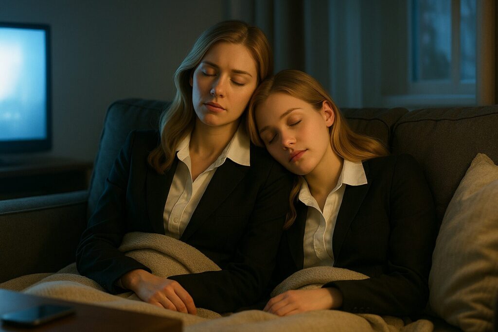 布団やソファで寝落ちした経験は、特別な瞬間に挑みながらも日常に戻る人間の愛すべき側面を浮き彫りにしています。