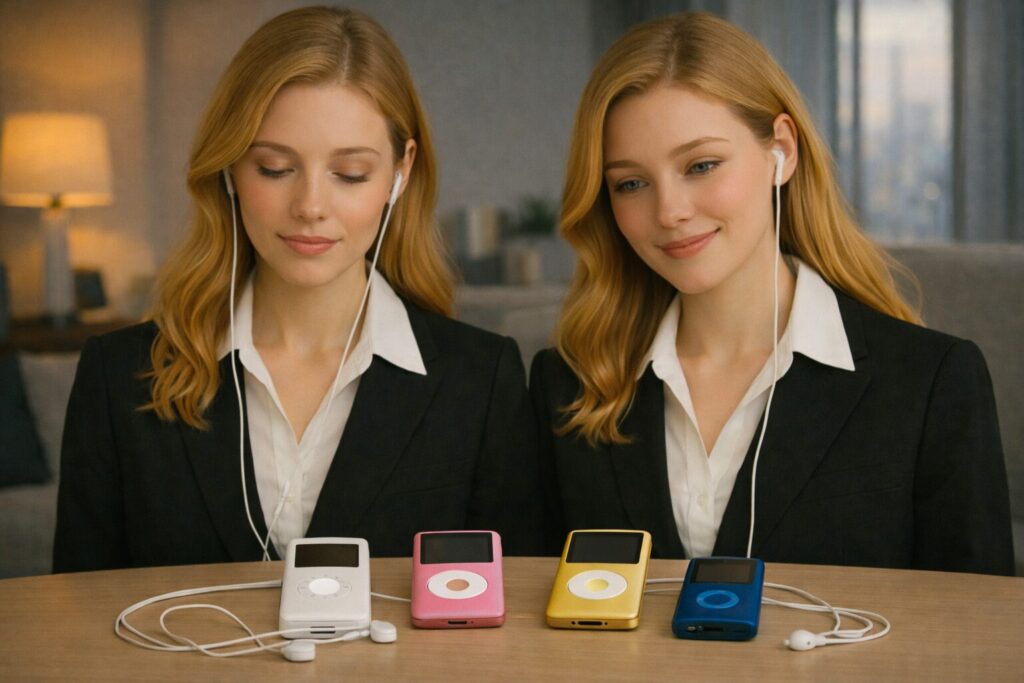 AppleのiPodはその革新的なデザインと使いやすさで、当時の若者の間で爆発的な人気を博しました。白いイヤホンと特徴的なクリックホイール、そしてiPod classic、nano、shuffle、touchといった多様なモデルが人々を魅了しました。これらのモデルは音楽再生だけでなく、写真や動画を携帯する手段としても支持を集め、特にiPod nanoやiPod touchは街のあちこちで見かけることができ、若者たちの『必需品』となっていました。iPodを通じて、音楽がより身近な存在となり、日常に溶け込んでいったのです。