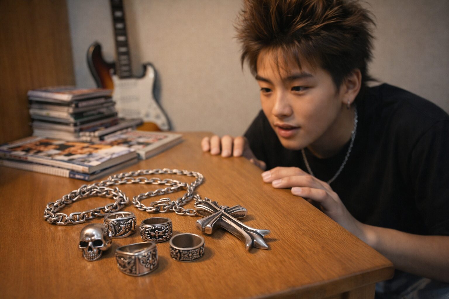 これらのシルバーアクセサリーは、非常に高価で、当時の若者には“手が出ない”という現実がありましたが、それが逆に彼らの夢を膨らませ、雑誌を通じてその魅力を夢想する日常の一部となりました。高価ゆえに希少性が高く、手に入れることで一種の達成感を与えてくれるアイテムでもあったのです。